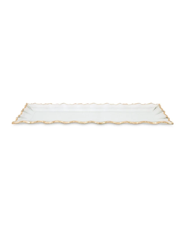 Rectangular Glass Tray with Handles and Gold-Tone Rim
