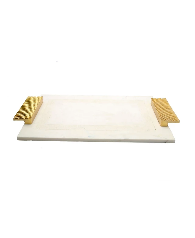 Classic Touch Porcelain Tray With Gold Beaded Borders and Handles
