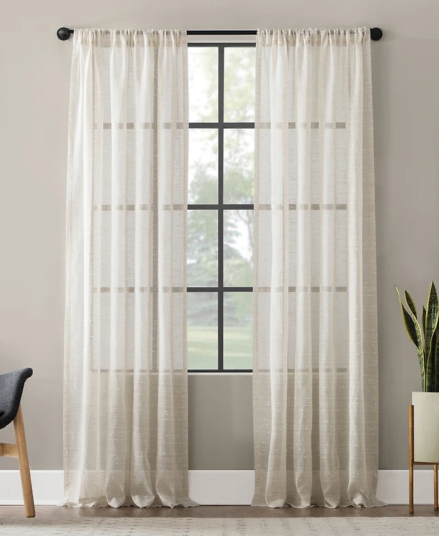 Textured Slub Stripe Anti-Dust Linen Blend Sheer Curtain Panel