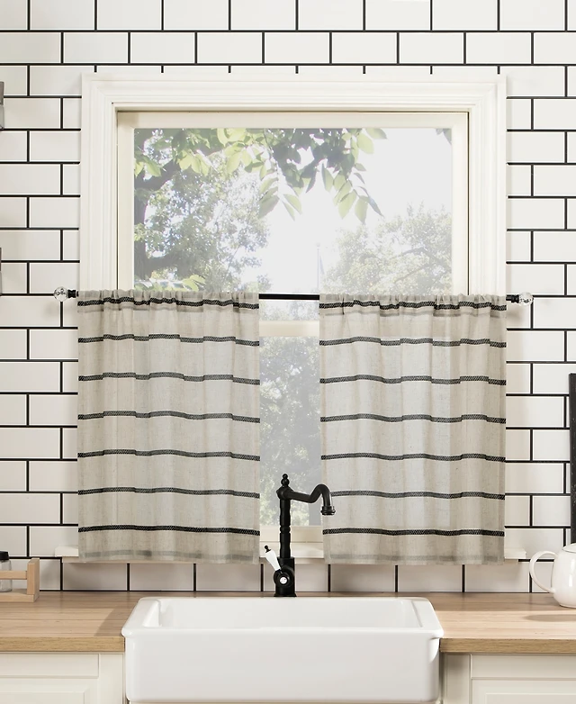 Textured Slub Stripe Anti-Dust Linen Blend Sheer Cafe Curtain Valance
