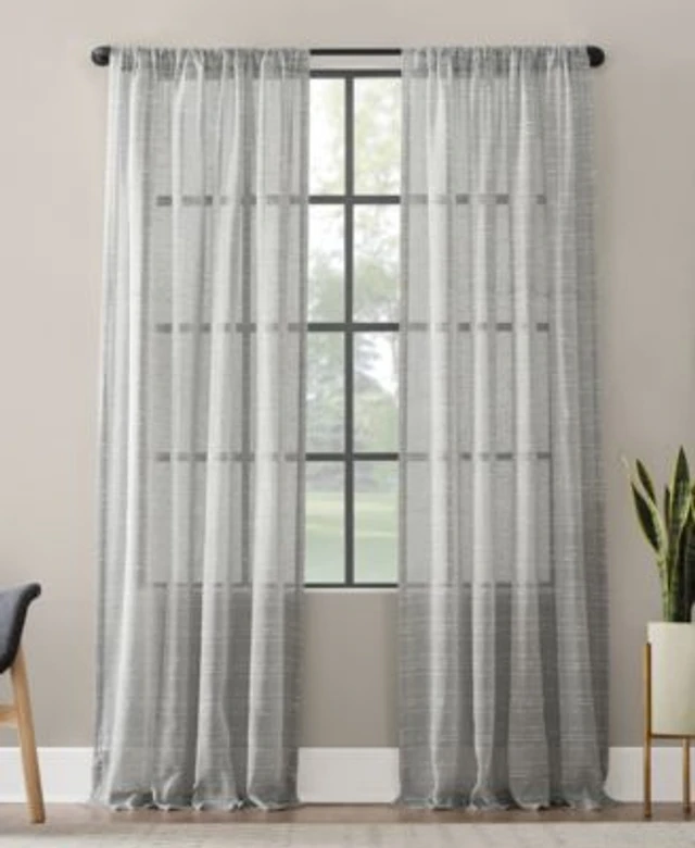 Textured Slub Stripe Anti Dust Linen Blend Sheer Curtain Panel
