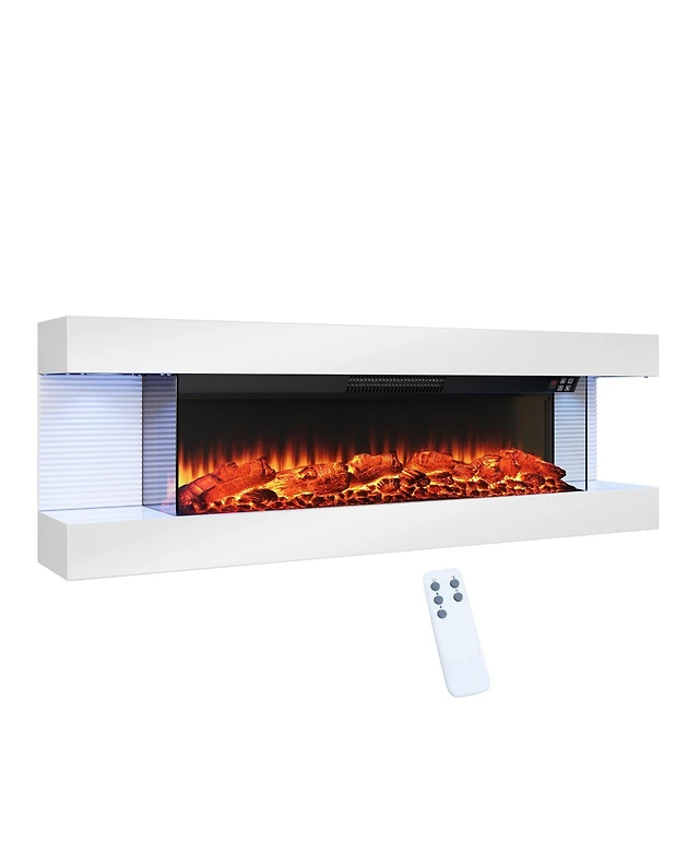 Clihome Sided Wall Mounted Led Electric Fireplace With Floating Mantel,Remote Control Adjustable Heat