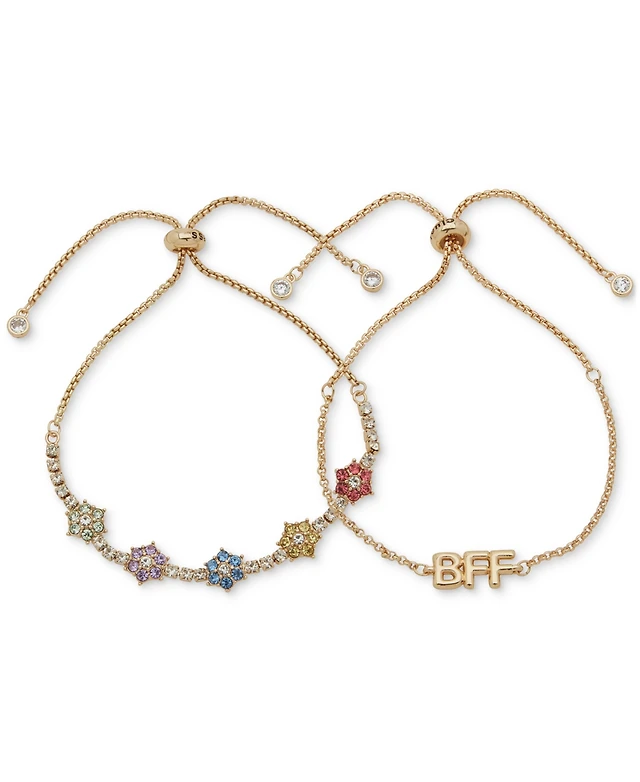 Clueless Gold-Tone 2-Pc. Set Bff & Multicolor Crystal Flower Slider Bracelets