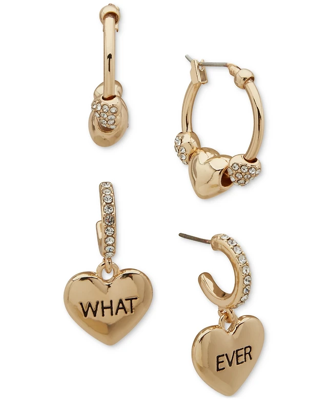 Clueless Gold-Tone 2-Pc. Set Pave Heart Whatever Hoop Earrings