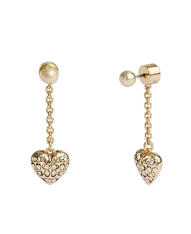 Coach Faux Stone Signature Quilted Heart Front-Back Earrings