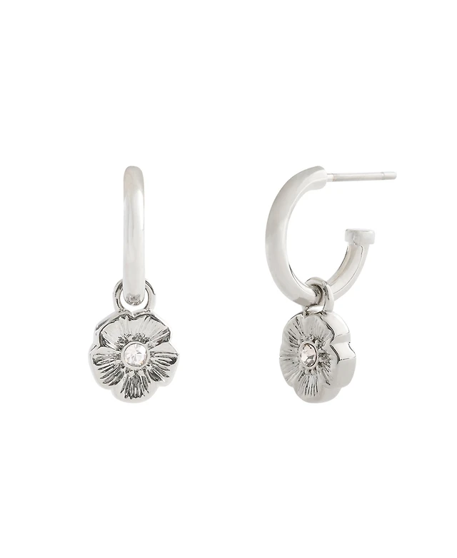 Coach Faux Stone Signature Tea Rose Huggie Earrings