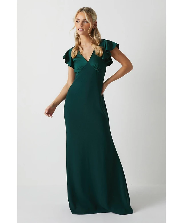 Coast Women's Ruffle Sleeve Satin Wrap Dress