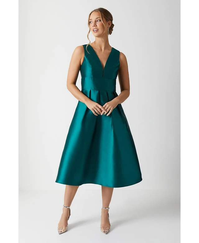 Coast Women's Satin Bodice Pleat Skirt Midi Dress.