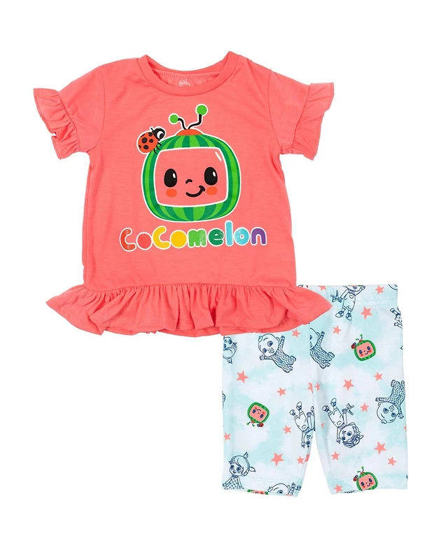 CoComelon Toddler Girls Jj Yoyo Tomtom Peplum T-Shirt and Bike Shorts Outfit Set Pink