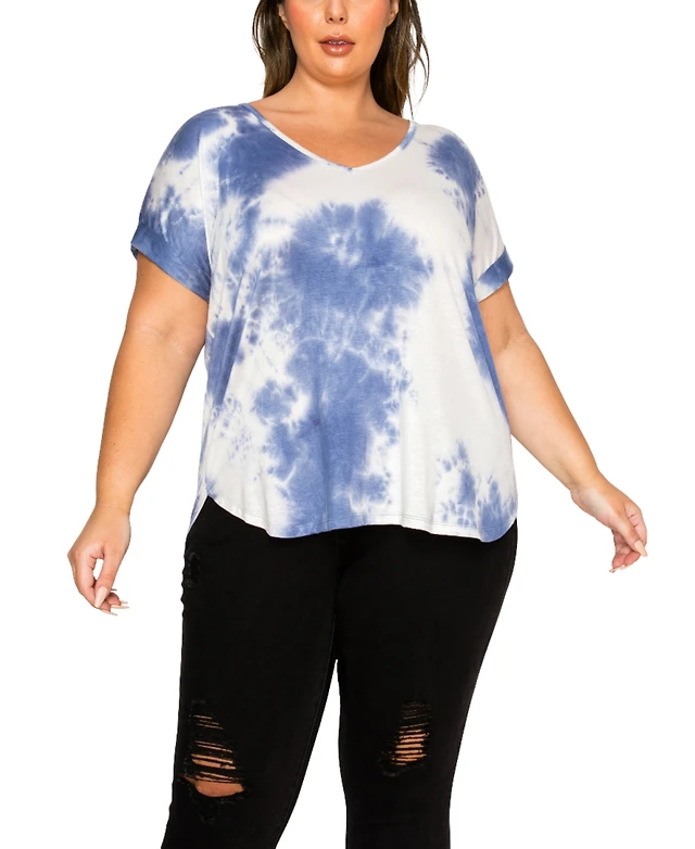 Coin 1804 Plus Tie Dye V-neck Rolled Short Sleeve Top