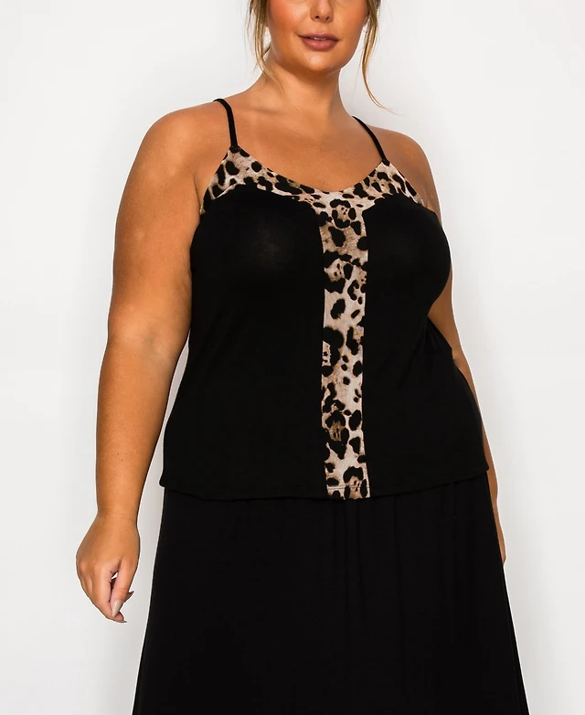 Coin 1804 Plus Leopard Mesh Rayon Mix Panel Cami Top