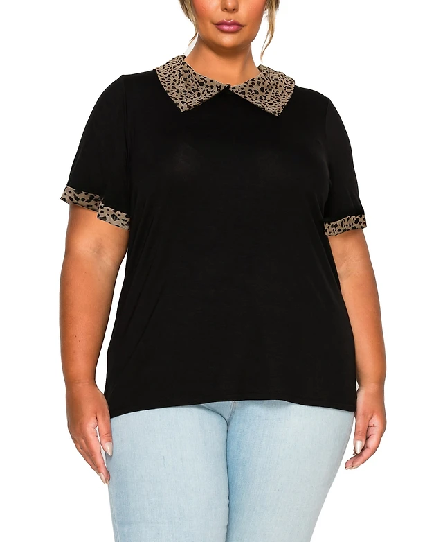 Coin 1804 Plus Pebble Mesh Collar Keyhole Back Short Sleeve Top