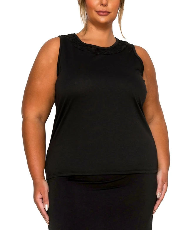 Coin 1804 Plus Cheetah Burnout Contrast Neck Inset Tank Top
