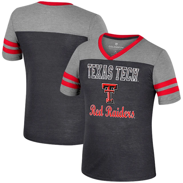 Girls Youth Colosseum Black/Heather Gray Texas Tech Red Raiders Summer Striped V-Neck T-Shirt