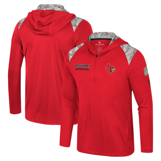 Men's Colosseum Red Louisville Cardinals OHT Military Appreciation Quarter-Zip Hoodie Jacket