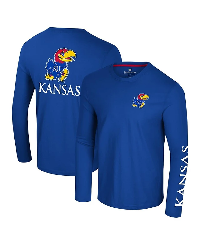 Colosseum Men's Royal Kansas Jayhawks Logo Lockup 3-Hit Active Blend Long Sleeve T-Shirt