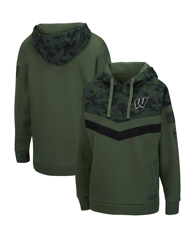 Women's Olive and Camo Wisconsin Badgers Oht Military-Inspired Appreciation Extraction Chevron Pullover Hoodie