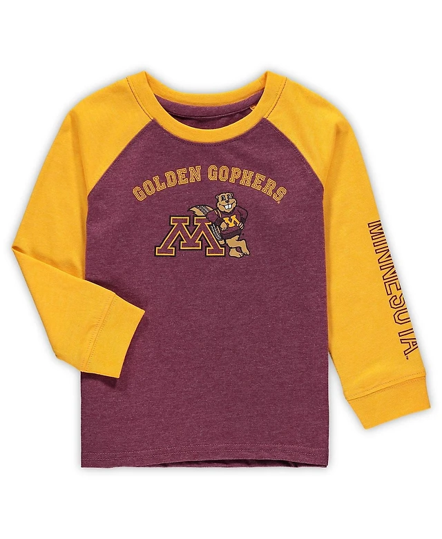 Toddler Boys and Girls Colosseum Heathered Maroon Minnesota Golden Gophers Long Sleeve Raglan T-shirt