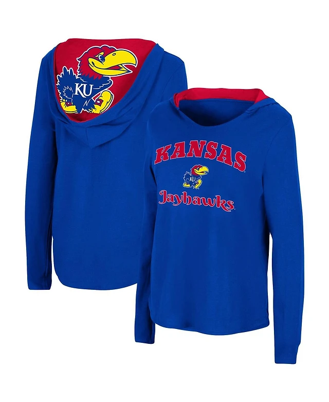 Women's Colosseum Royal Kansas Jayhawks Catalina Hoodie Long Sleeve T-Shirt