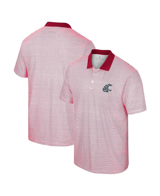 Men's Colosseum White, Crimson Washington State Cougars Print Stripe Polo Shirt