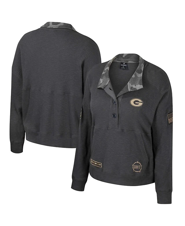 Colosseum Women's Heather Charcoal Georgia Bulldogs Oht Military Appreciation Payback Henley Thermal Sweatshirt