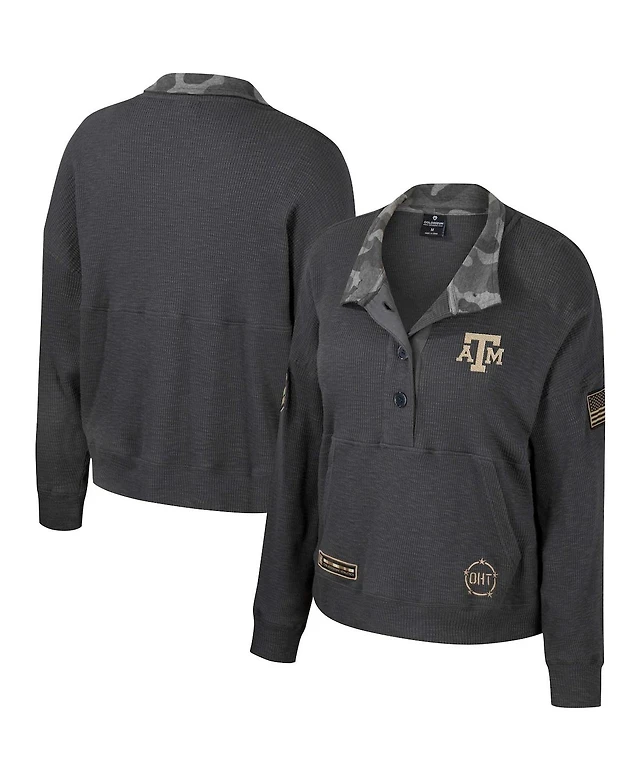 Colosseum Women's Heather Charcoal Texas A M Aggies Oht Military Appreciation Payback Henley Thermal Sweatshirt