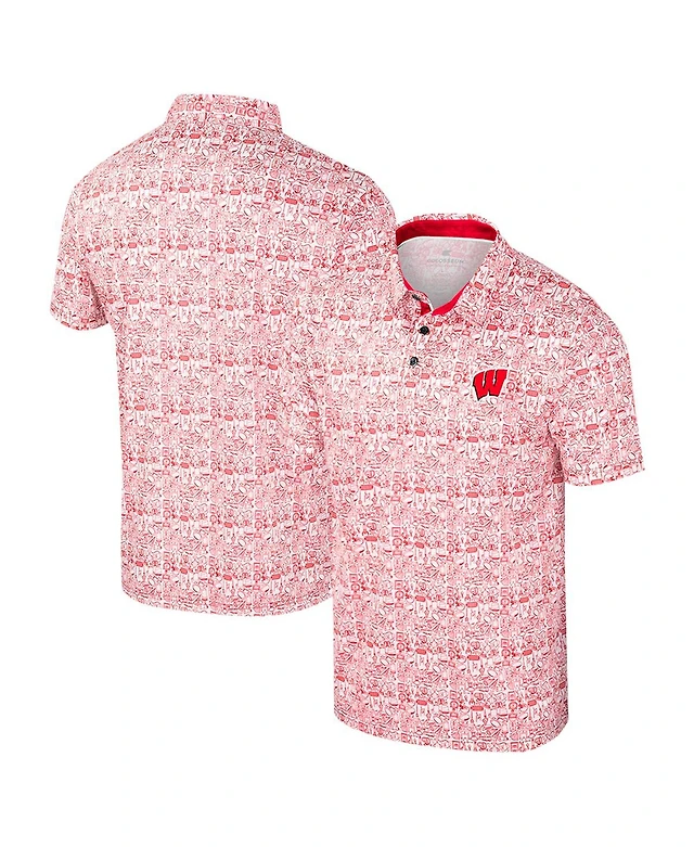 Colosseum Men's Red Wisconsin Badgers It's Time Allover Print Polo Shirt
