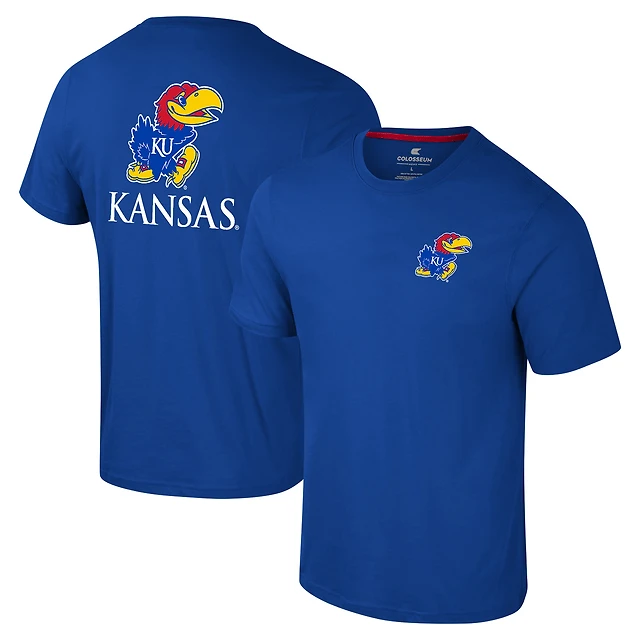 Men's Colosseum Royal Kansas Jayhawks Logo Lockup 2-Hit Active Blend T-Shirt
