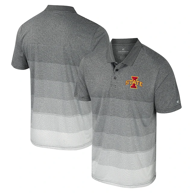 Men's Colosseum Gray Iowa State Cyclones Striped Mesh Polo