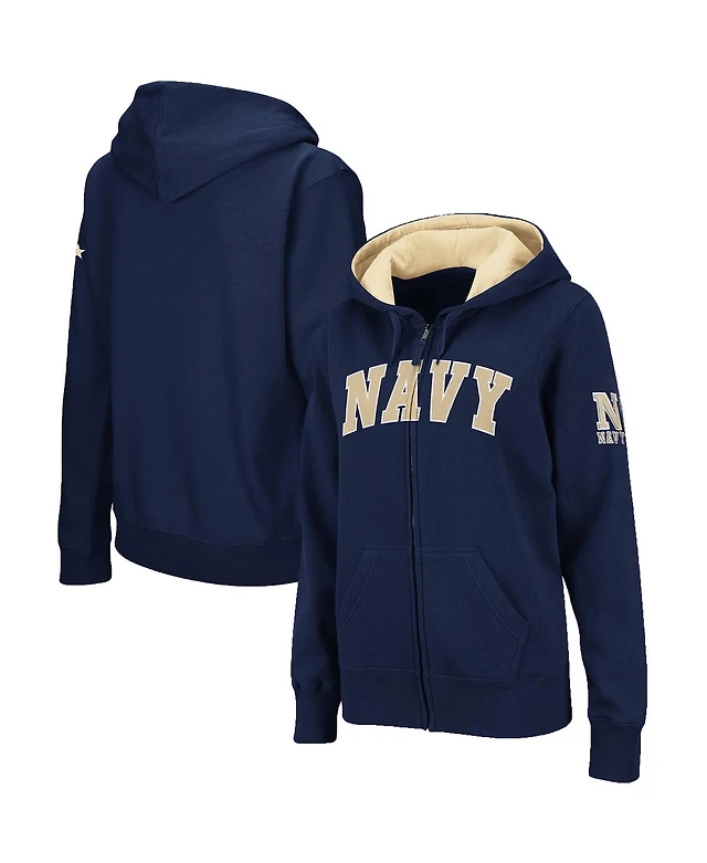 Women's Navy Midshipmen Arched Name Full-Zip Hoodie