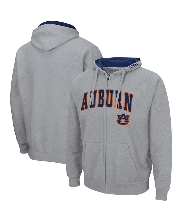 Men's Colosseum Heathered Gray Auburn Tigers Arch and Logo 3.0 Full-Zip Hoodie