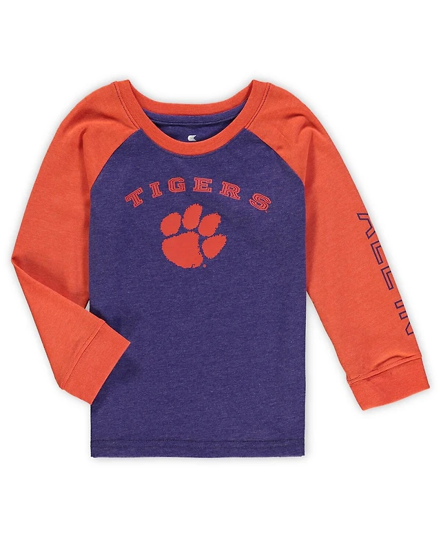Toddler Unisex Colosseum Heathered Purple Clemson Tigers Long Sleeve Raglan T-shirt