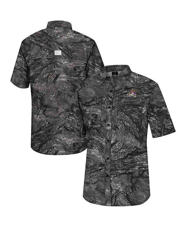 Men's Colosseum Charcoal Ecu Pirates Realtree Aspect Charter Full-Button Fishing Shirt