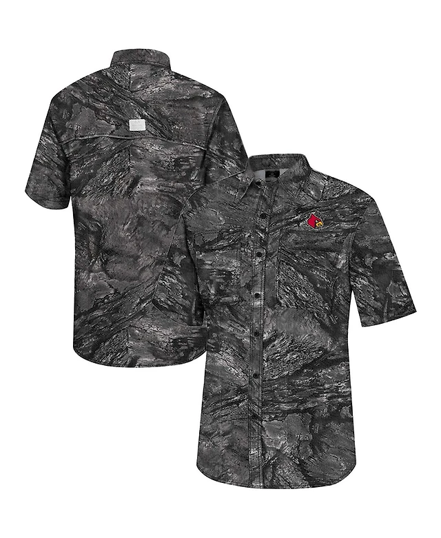 Men's Colosseum Charcoal Louisville Cardinals Realtree Aspect Charter Full-Button Fishing Shirt