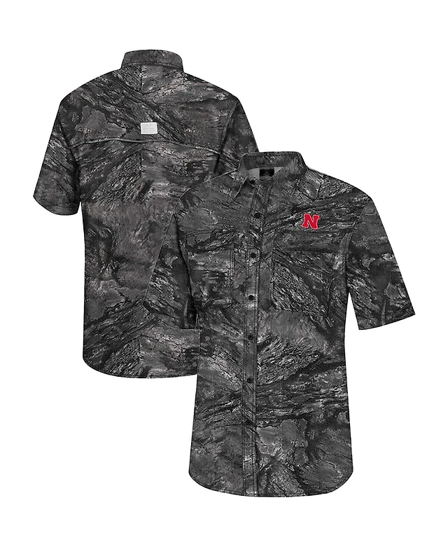 Men's Colosseum Charcoal Nebraska Huskers Realtree Aspect Charter Full-Button Fishing Shirt