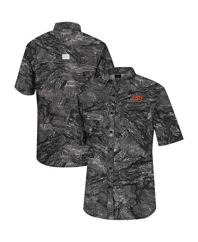 Men's Colosseum Charcoal Oklahoma State Cowboys Realtree Aspect Charter Full-Button Fishing Shirt