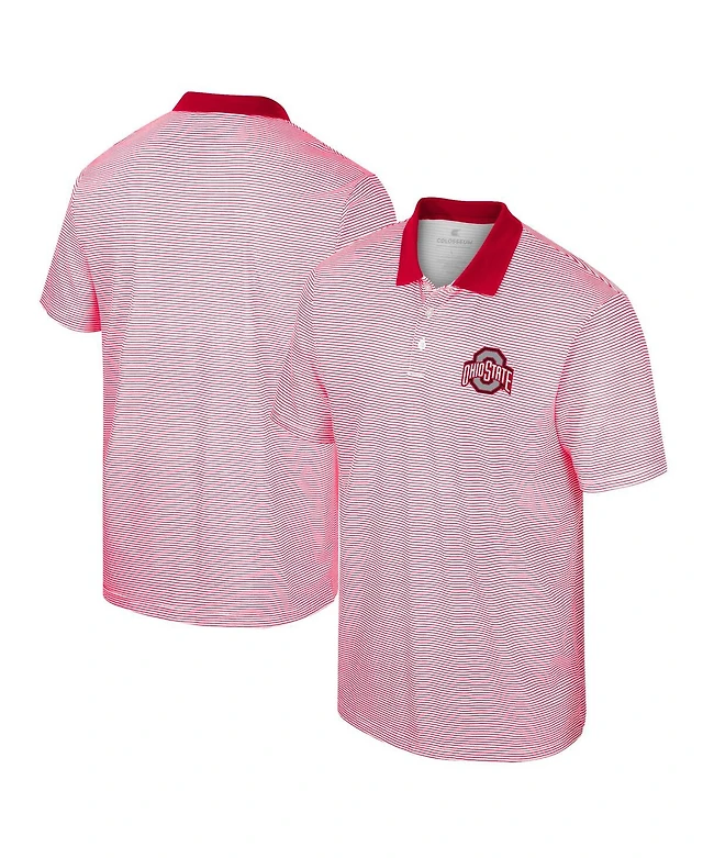 Men's Colosseum White, Scarlet Ohio State Buckeyes Print Stripe Polo Shirt