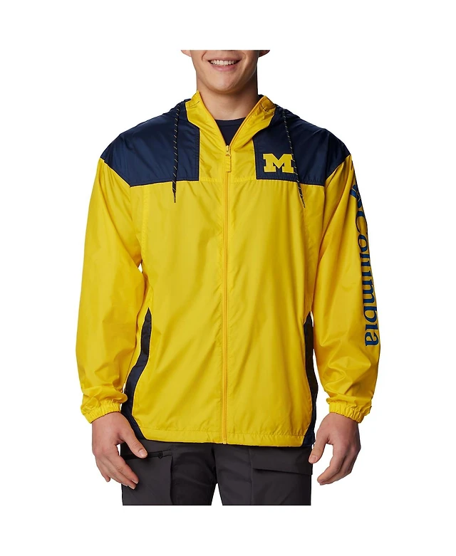 Columbia Men's Maize Michigan Wolverines Flash Challenger Omni-Shade Full-Zip Windbreaker Hoodie Jacket