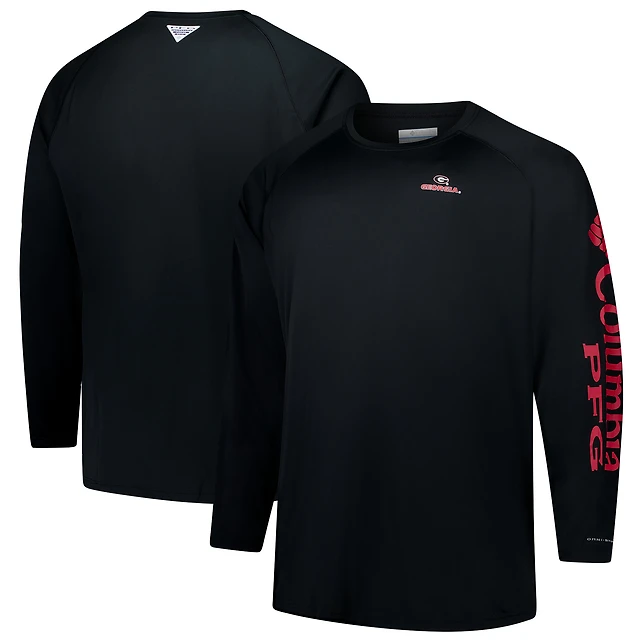 Men's Columbia Black Georgia Bulldogs Big & Tall Terminal Tackle Raglan Omni-Wick Long Sleeve T-Shirt