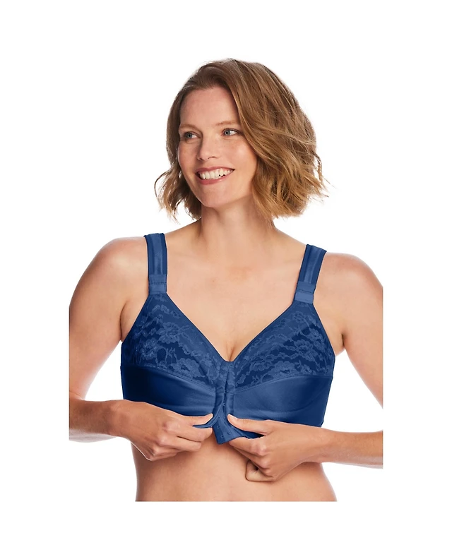 Comfort Choice Women's Front-Close Embroidered Wireless Posture Bra