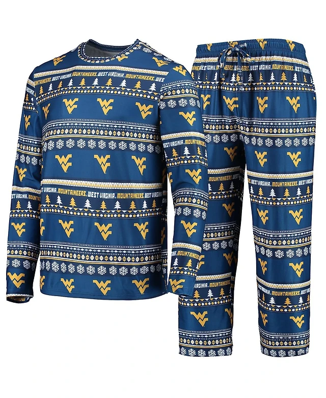 Men's Concepts Sport Navy West Virginia Mountaineers Ugly Sweater Long Sleeve T-shirt and Pants Sleep Set