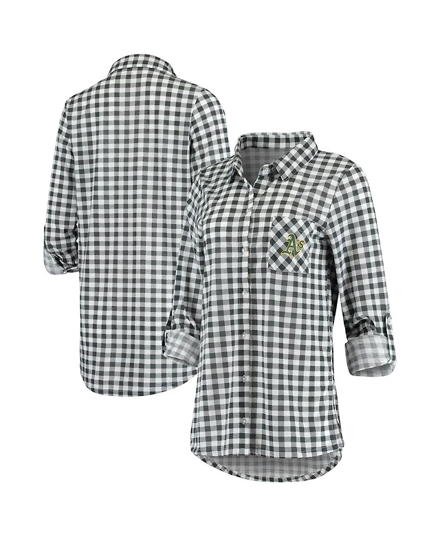 Women's Concepts Sport Charcoal Oakland Athletics Wanderer Long Sleeve Button-Up Nightshirt
