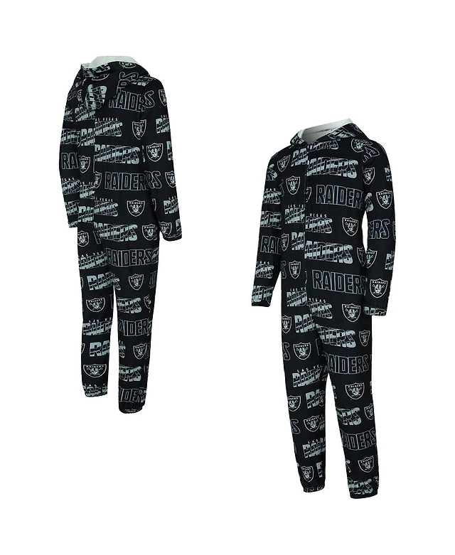 Concept Sport Men's Black Las Vegas Raiders Shuffle All-Over-Print Microfleece Full-Zip Union Suit