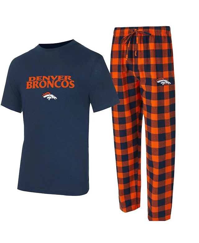 Concepts Sport Men's 2-Piece Navy/Orange Denver Broncos Avondale T-Shirt and Flannel Pants Set