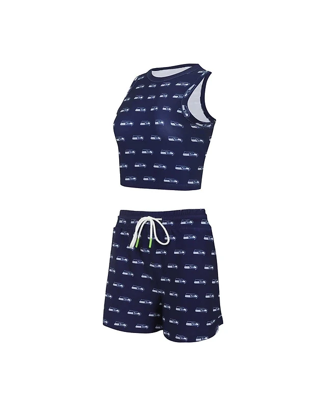 Concepts Sport Women's Seattle Seahawks Gauge Allover Print Cropped Tank Top Shorts Sleep Set