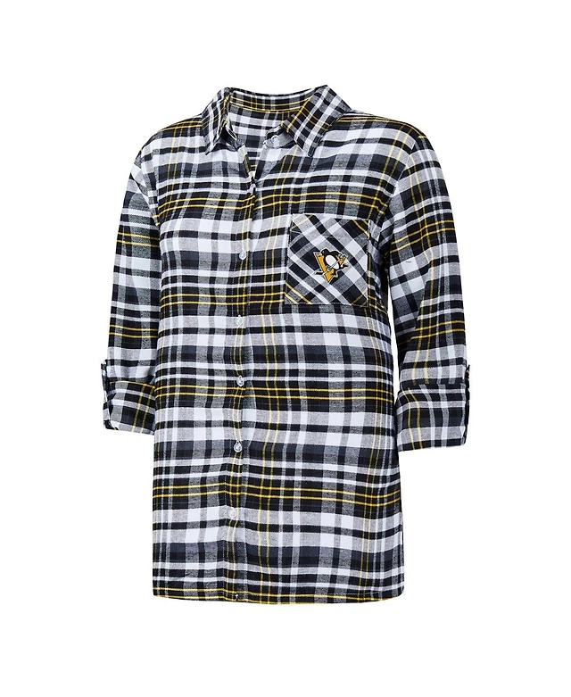 Women's Concepts Sport Black Pittsburgh Penguins Mainstay Flannel Full-Button Three-Quarter Sleeve Nightshirt