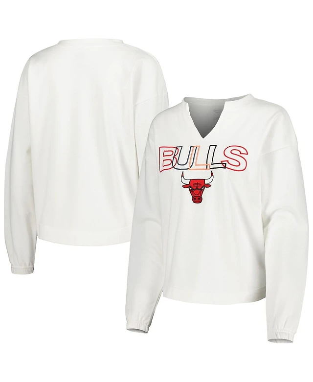 Women's Concepts Sport White Chicago Bulls Sunray Notch Neck Long Sleeve T-shirt