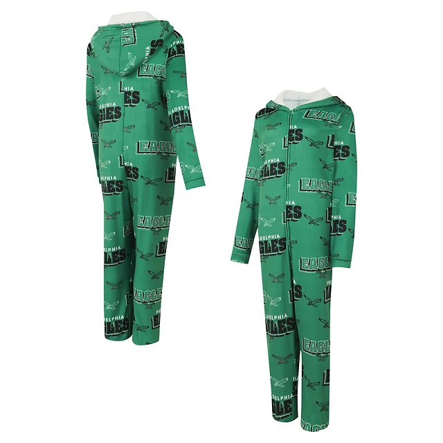 Women's Concepts Sport Kelly Green Philadelphia Eagles Throwback Roadway Allover Print Microfleece Full-Zip Union Suit