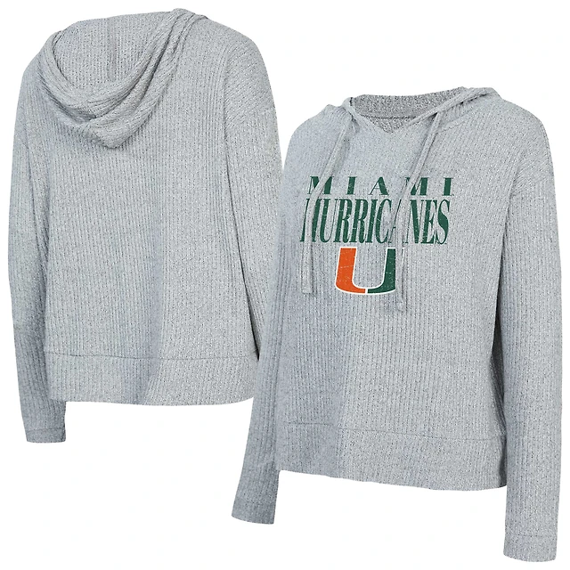 Women's Concepts Sport Grey Miami Hurricanes Juniper Soft Modest Cropped Long Sleeve Hoodie Top