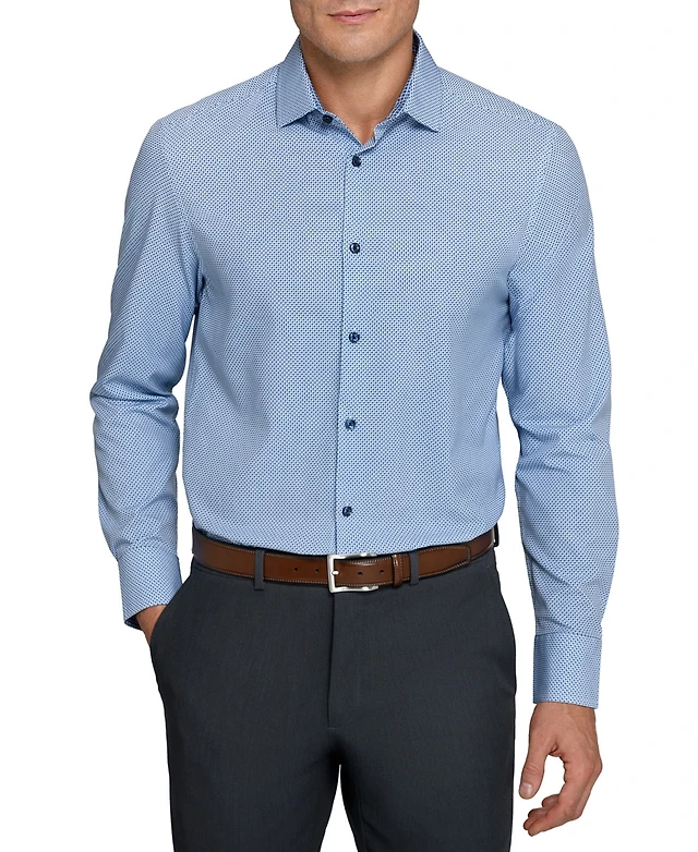 Men's Slim Fit Micro Geo 4-Way Stretch Performance Dress Shirt